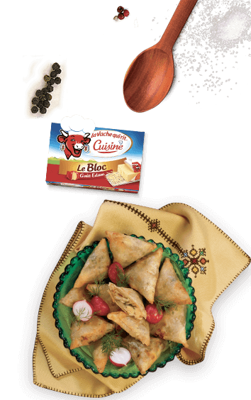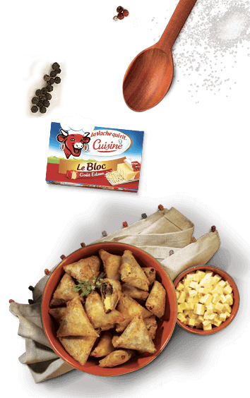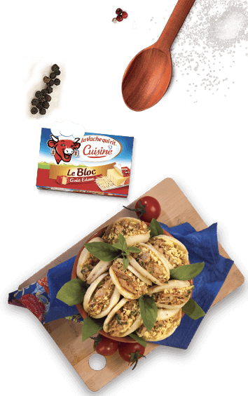 قلي البصل في دهن الخليع مع الزعتر. تبلي و اتركيه يتحمر على النار لمدة 10 دقائق ثم أضيفي الخليع و جبنة البلوك ®La Vache qui rit المقطعة إلى قطع صغيرة.