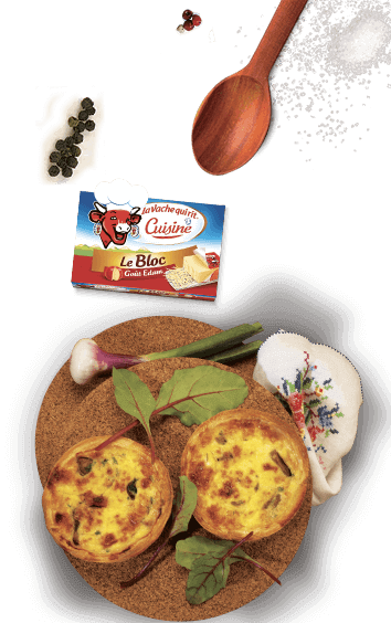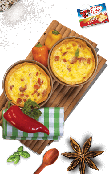 امزجي البيض مع الحليب، أضيفي القشدة، الكوزة و جبنة البلوك ®La Vache qui rit المحكوكة ثم تبلي.