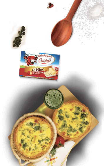 أذيبي الزبدة و أضيفي الدقيق، ثم مرق الخضر بارد، اتركي الخليط 5 دقائق فوق النار مع التحريك إلى أن يجف تماما ثم أضيفي جبنة البلوك ®La Vache qui rit المحكوكة.