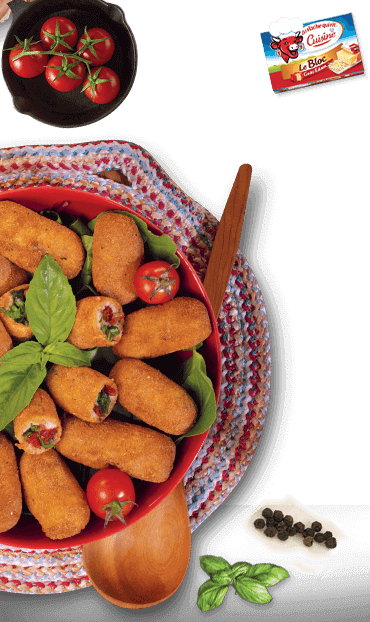 شكلي كويرات من الحشوة و مرريها في الدقيق، في البيض المخفوق ثم في الخبز المحمص. اقلي الكويرات في الزيت على درجة حرارة 170° ثم قطريها قبل التقديم.